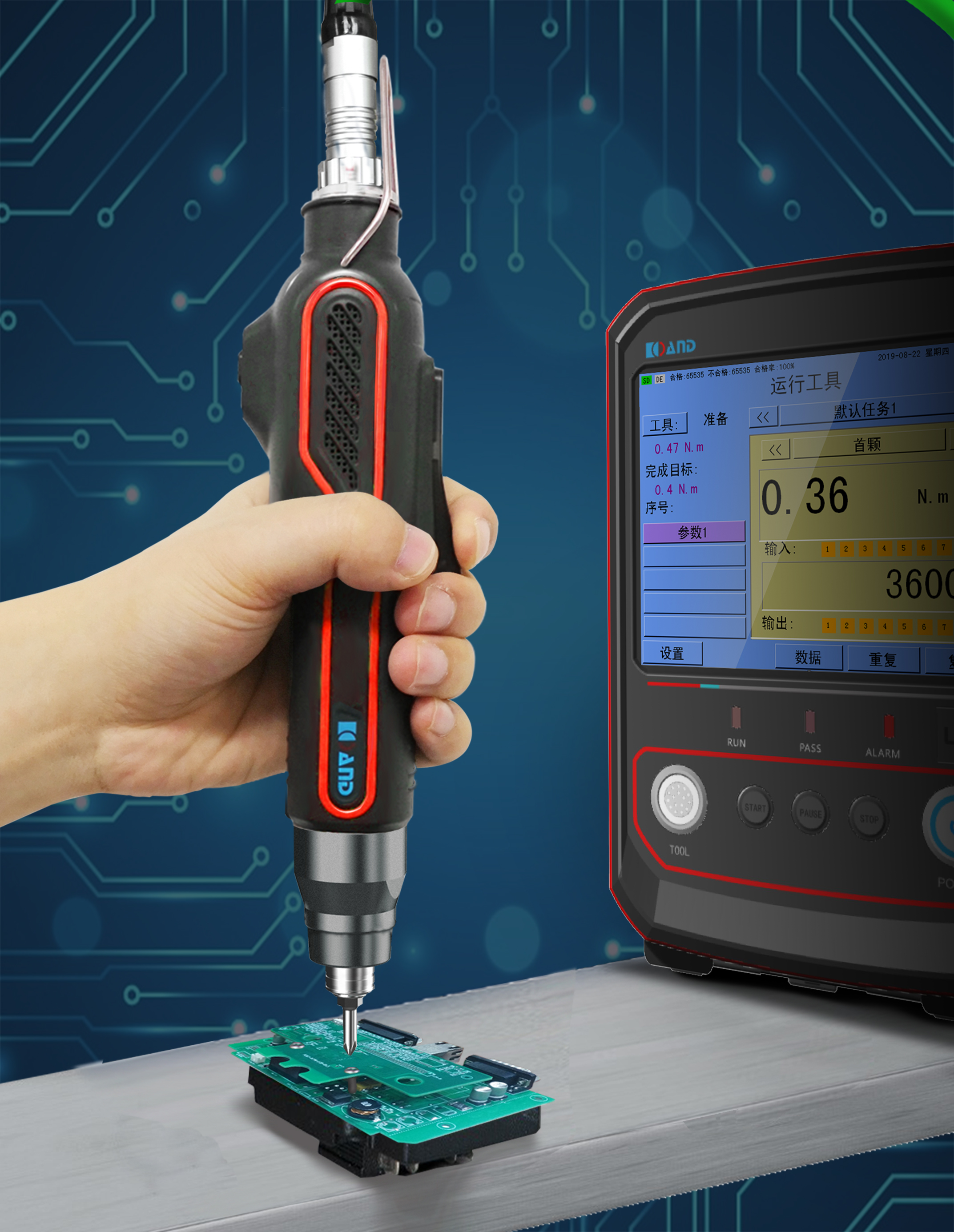 隨著現(xiàn)代化工業(yè)的飛速發(fā)展,國(guó)內(nèi)自動(dòng)化水平日益提升,對(duì)于生產(chǎn)效率的需求也是越來(lái)越高。因此國(guó)內(nèi)市場(chǎng)對(duì)于設(shè)備制造和裝配量的需求是十分巨大的。而傳統(tǒng)的電動(dòng)擰緊工具大部分還是靠人工持續(xù)進(jìn)行裝配工作,不僅無(wú)法保證產(chǎn)品的質(zhì)量,而且裝配后又要進(jìn)行人工檢查的工序無(wú)疑是拉低了生產(chǎn)效率的發(fā)展。同時(shí)人工成本的提升對(duì)于裝配生產(chǎn)線的競(jìng)爭(zhēng)也產(chǎn)生著巨大的影響。